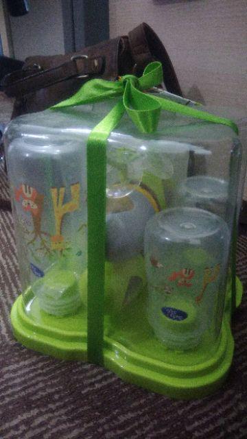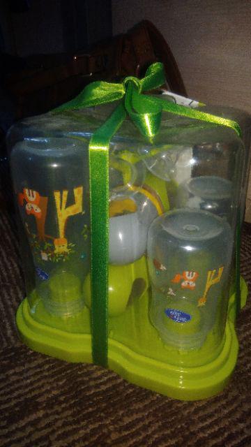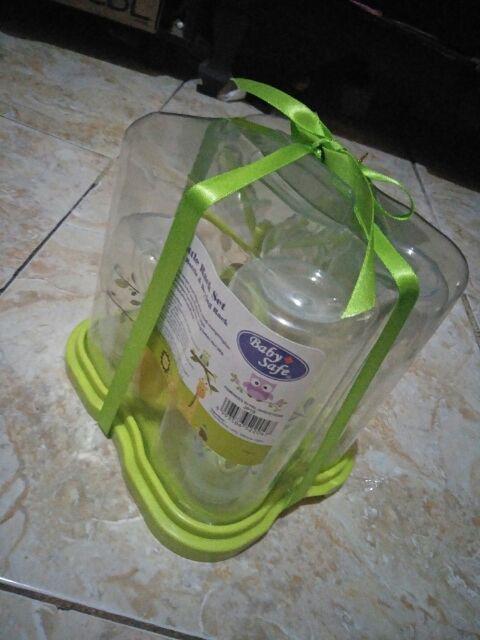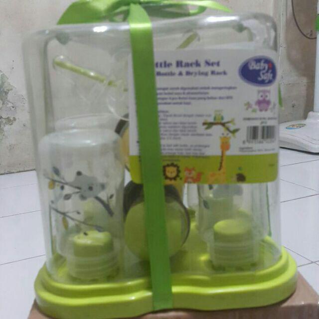 BabySafe Bottle Rack Set terdiri dari 4 botol susu BPA Free yang aman digunakan untuk bayi. Dirancang khusus untuk membantu mencegah kolik (kembung) dengan mengurangi gelembung udara di dalam susu, serta memastikan aliran susu yang lancar untuk kesehatan bayi. Menggunakan dot dengan bentuk alami, botol susu BabySafe mendukung perkembangan gigi dan rahang bayi. Dilengkapi dengan Drying Rack untuk mengeringkan dan menyimpan botol susu, cangkir & aksesorisnya. Terdapat pula cover untuk menghindari debu atau kuman masuk ke dalam, sehingga botol dan aksesorisnya tetap higienis setelah disterilisasi. Dikemas dengan menarik, sangat cocok sebagai kado.